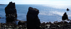Reykjanes (The Steamy Peninsula) is the name of the southwestermost tip of the country. The area is and looks very volcanic and barren. The most conspicuous are the old shield volcanoes and the crater rows, which most probably were created in historic times. The area is scarred with fissures, there is much thermal activity and the nearby, powerful high temperature area has partially been harnessed to supply
